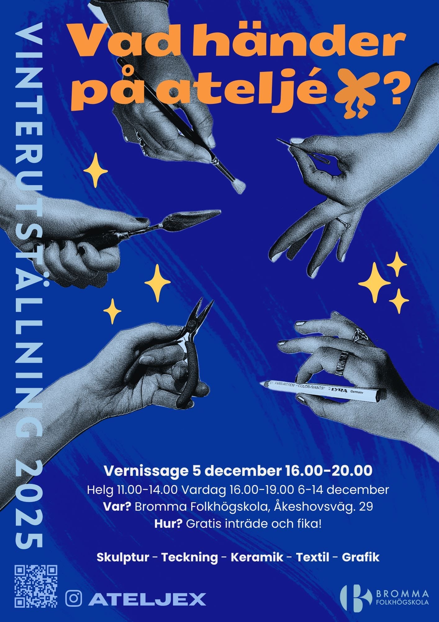 Konstlinjen Ateljé X har sin årliga vinterutställning 5-14 december. De visar upp skulptur, teckning, keramik, textil, grafik.