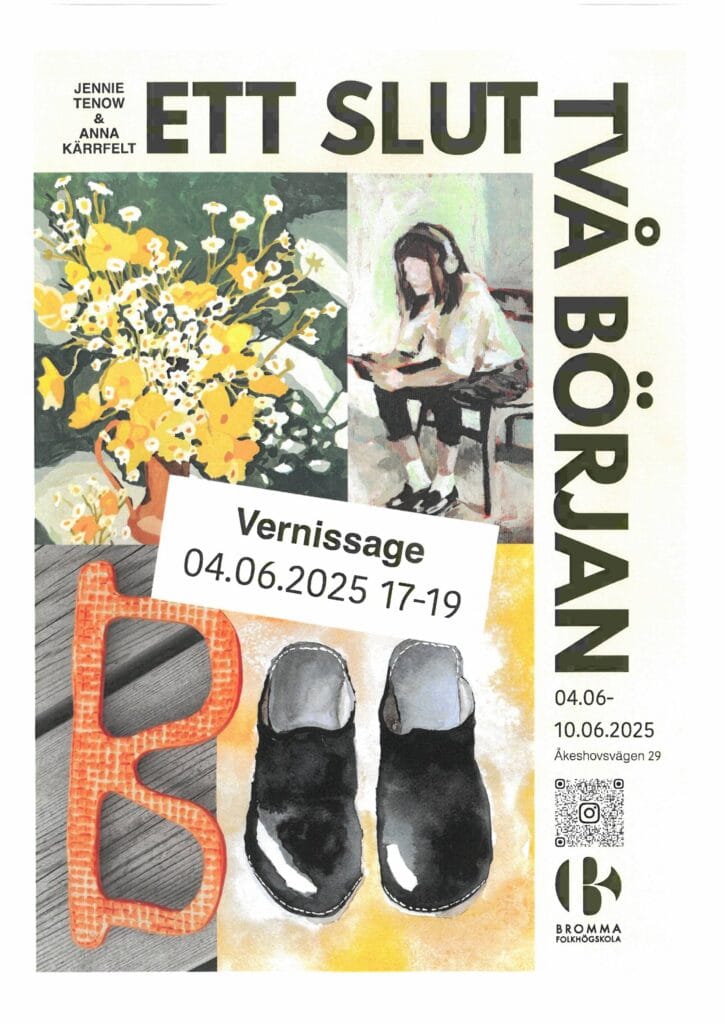Anna Kärrfelt och Jennie Tenow som gått fördjupningsåret på Ateljé X visar sina konstnärliga projekt i utställningen ”Ett slut, två början”. I utställningen möts måleri och keramik i två personliga och utforskande uttryck.